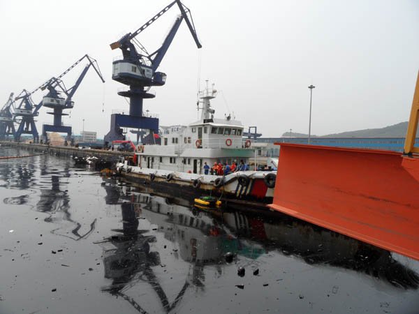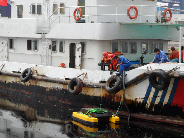 (2010年7·16事故現(xiàn)場照片-溢油回收至油艙)